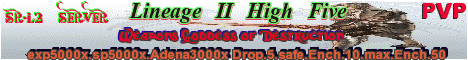 L2-SR RETUMED SERVER pvp Lineage II High Five GOD .exp5000x.sp5000x.Adena3000x Drop.5.safe.Ench.10.max.Ench.50 Weapons+Armor Goddess of Destruction